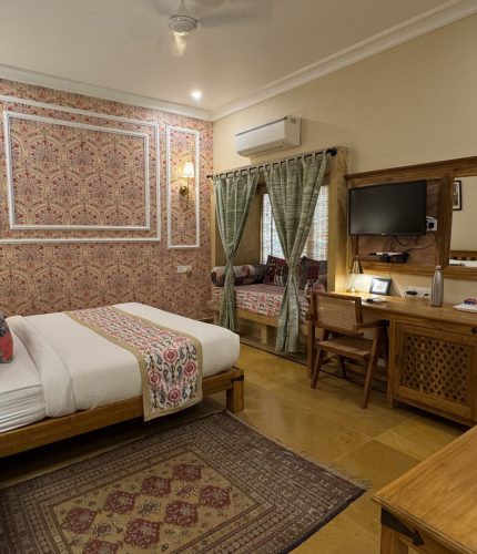 Such a pretty place this was!! We stayed in the new Haveli Rooms located on the ground floor. The rooms are so aesthetic and pretty. They scream Rajasthan all over through their decor. Food - we had taken a breakfast inclusive package but since there were less people they gave us an A La carte menu. Freshly made Aloo Puri and Paneer Paratha was yummy! They arrange for an auto rickshaw to go to the fort or lake. Just inform them 5-10 mins beforehand. The staff was helpful in every way and I would highly recommend this hotel.